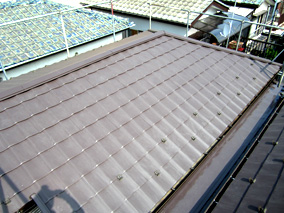 築年数が経過し瓦の下地が傷んでいたため、波板に葺き替えを行っております。